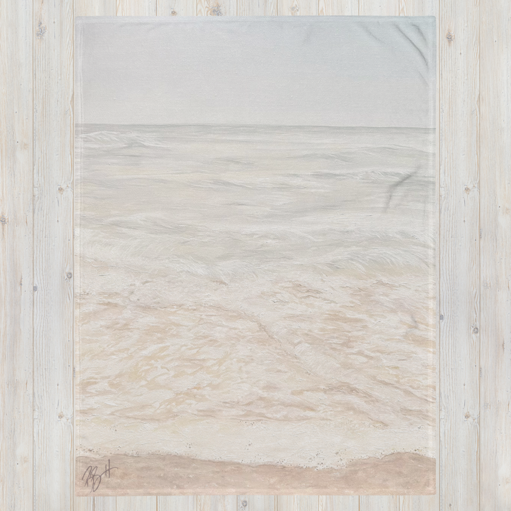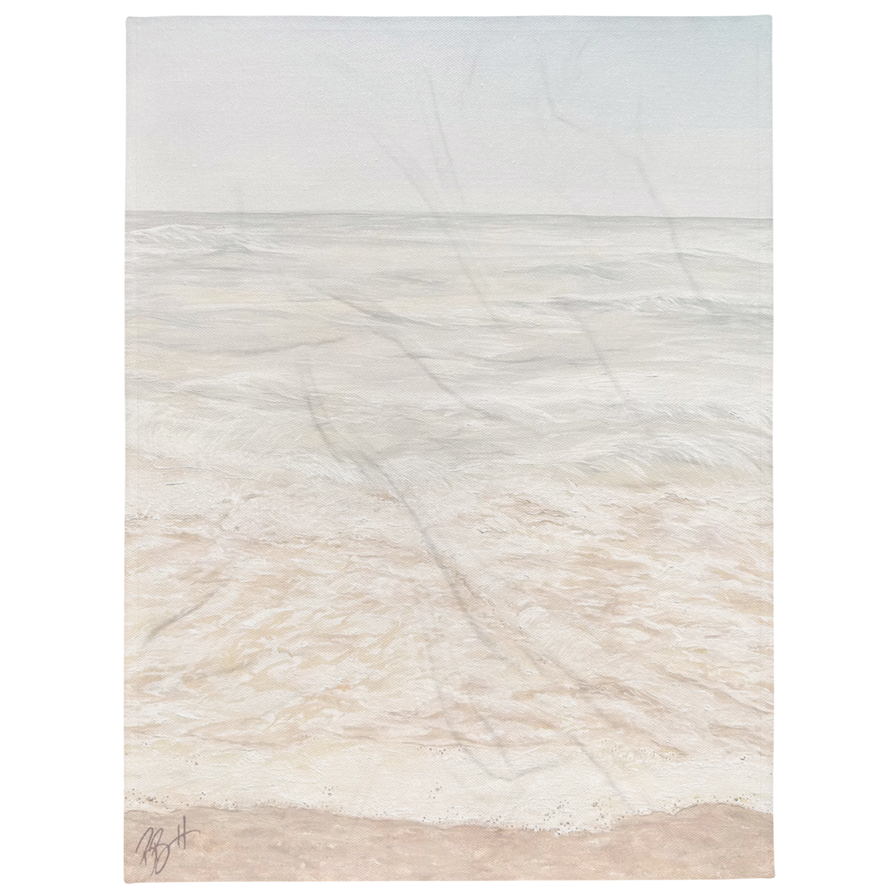 Looking for cozy and beautiful? This soft silk touch throw blanket features Becky Bennett's "Breathe" painting, with a soft pink beach scene straight from the shores of Hawaii. Ideal for lounging on the couch during chilly evenings or for snuggling up with the people you love!